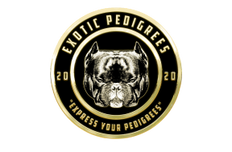 Three-generation pedigree banner includes photos with names of ancestry, registry, kennel name/logo and owner’s social media information.